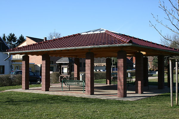 Solche feststehende Pavillons könnten auf dem Dorfplatz errichtet werden: