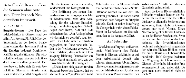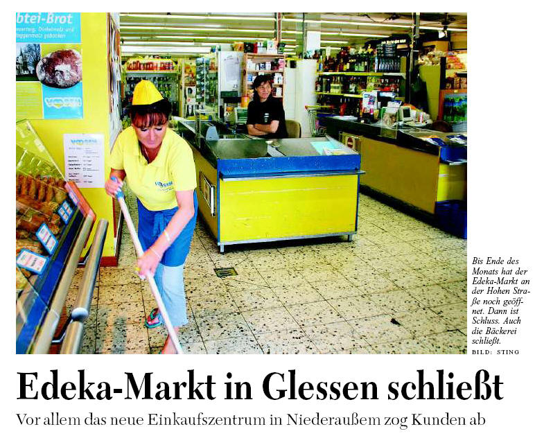 ist und im Ortskern Glessener Geschäfte das Handtuch werfen müssen.