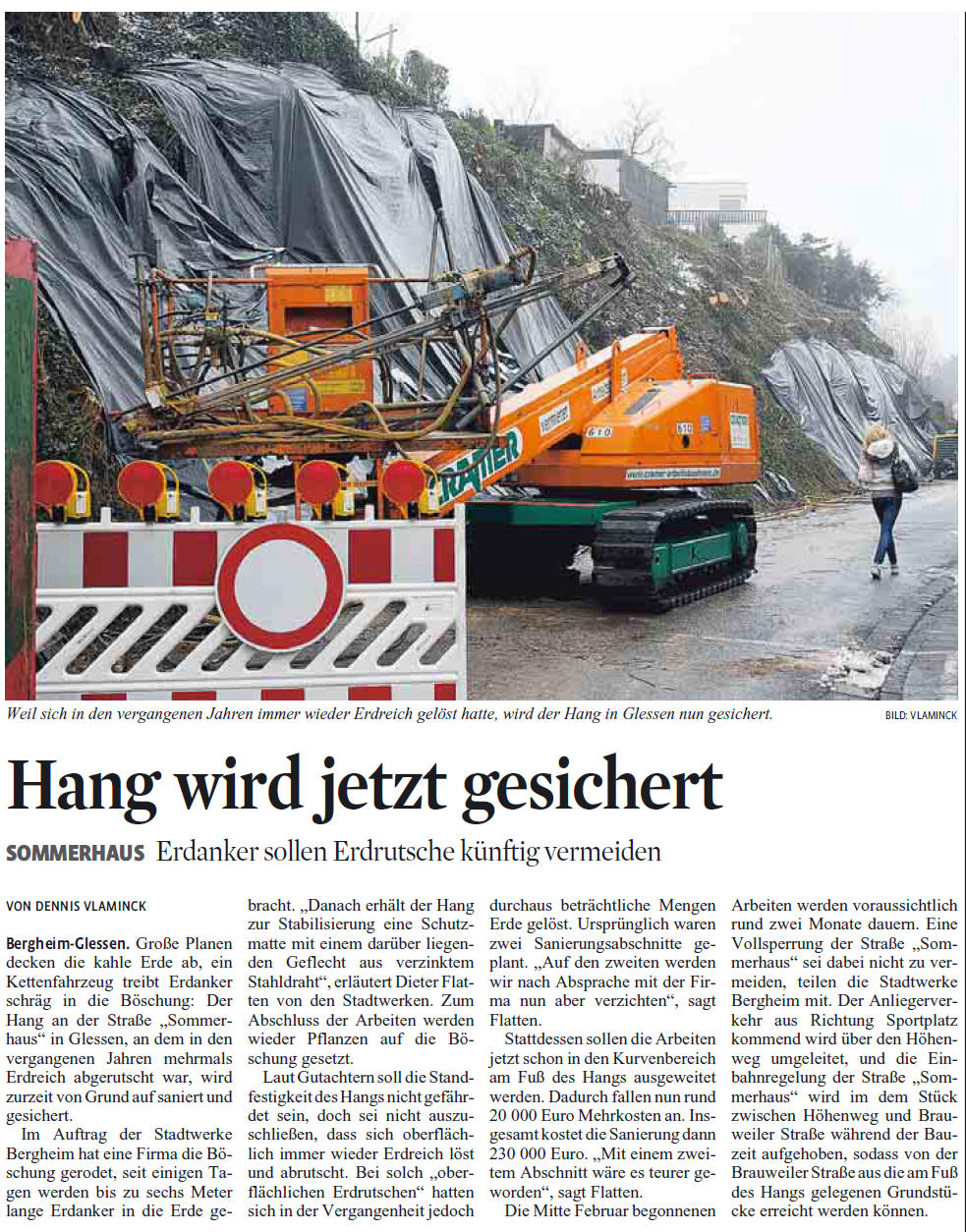 vgl. auch: Böschung wird saniert / ERDRUTSCHE Hang in Glessen erhält Anker und Drahtgeflecht 10.2.2011 Ein Anwohner will keine Erdanker 10.08-2010