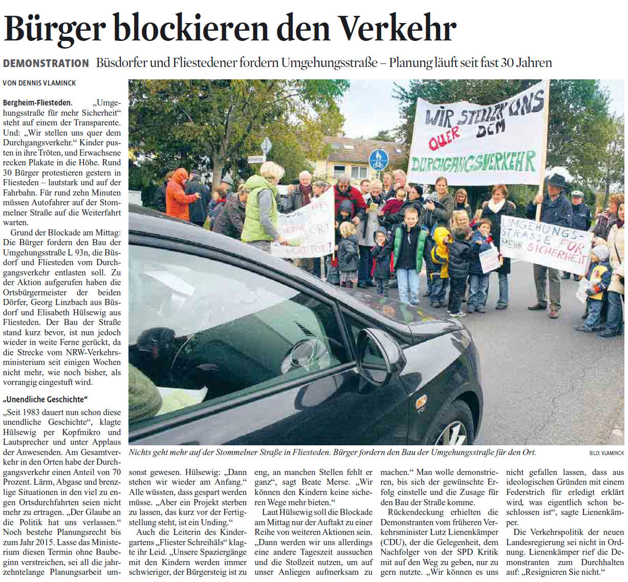 Zuviel Verkehr im Dorf - Umgehung - Alternativen für Glessen gesucht