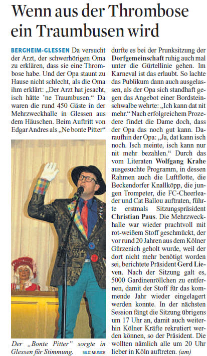 können. Die Kindersitzung in Glessen beginnt um 16 Uhr. Die Prunksitzung liegt