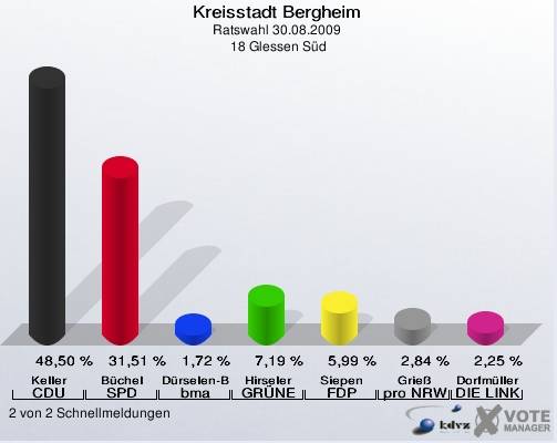 eine CDU Mehrheit in Glessen-Süd. Gleiches gilt für die anderen