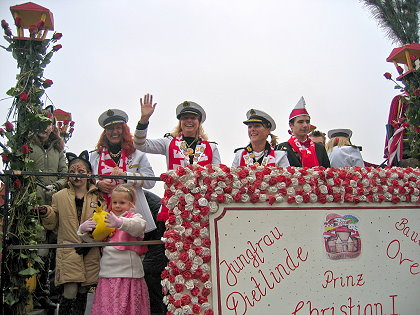 Ebenfalls auf dem Prinzenwagen: die drei Frauen Petra Paulsen, Ursula Schmitz und Claudia Paus (Quelle: M. Broetje 2007)