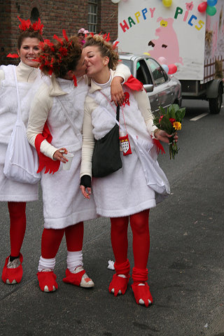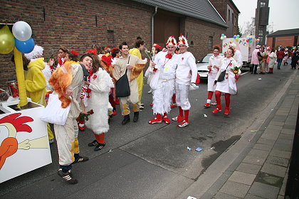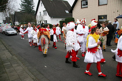 Auch andere Zugteilnehmer - hier der "Hühner-Clan" machten sich auf den Weg zur Zoch-Aufstellung (Quelle: M. Broetje 2007)