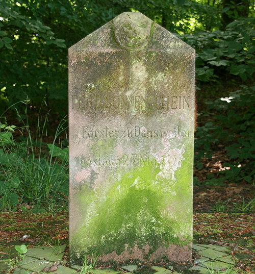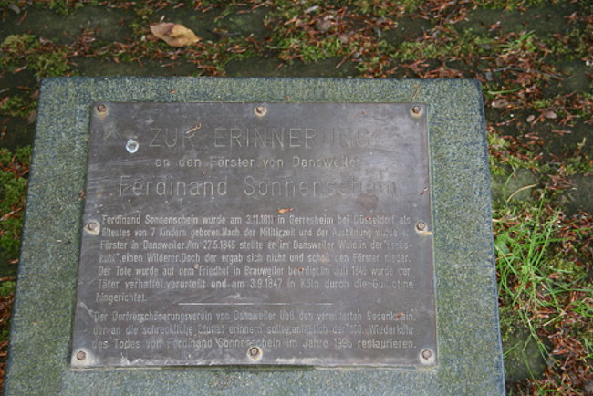 Inschrift: „Ferd. Sonnenschein, Förster zu Dansweiler, gestorben am 27.