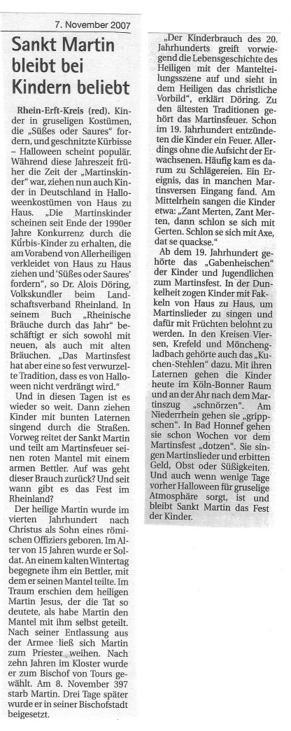 also „Süßes oder Saures". Damit scheinen die Martinszüge und das traditionelle „Schnörzen"