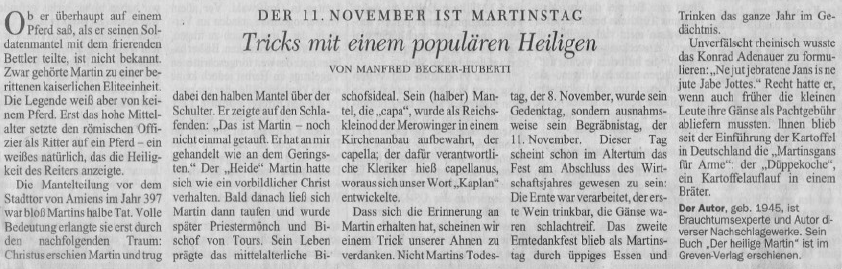jemand weiß, dass das Martinsfest auch früher schon nicht immer nur gesittet